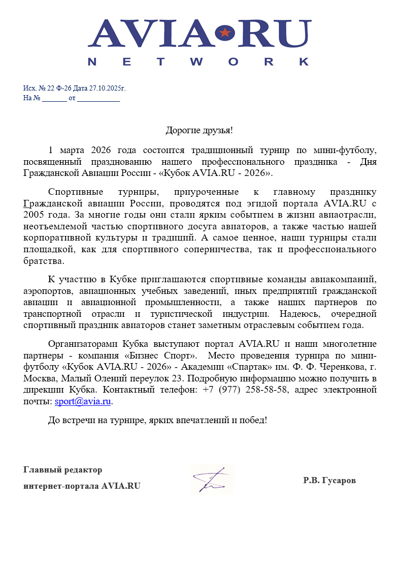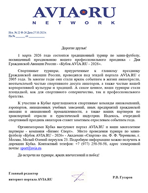 Обращение главного редактора AVIA.RU Романа Гусарова
