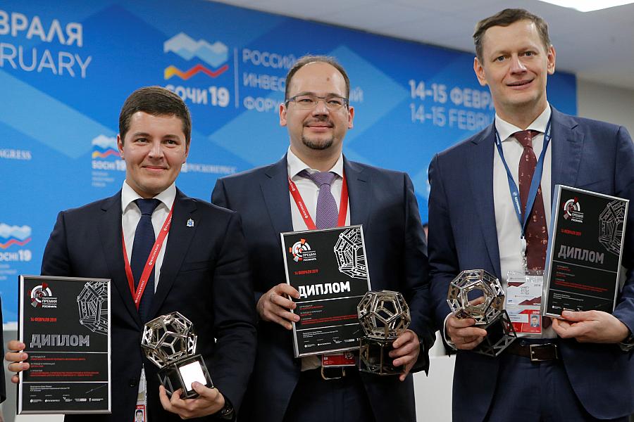 Проект строительства аэропортового комплекса аэропорта Новый Уренгой (входит в холдинг «Аэропорты Регионов») признан победителем в номинации «Сделка года» Национальной премии в сфере инфраструктуры «РОСИНФРА». Награду приняли: губернатор Ямало-Ненецкого автономного округа Дмитрий Артюхов, генеральный директор УК «Аэропорты Регионов» Евгений Чудновский и первый вице-президент «Газпромбанка» Алексей Чичканов. Церемония состоялась сегодня в рамках деловой программы Российского инвестиционного форума, проходящего в эти дни в Сочи.
