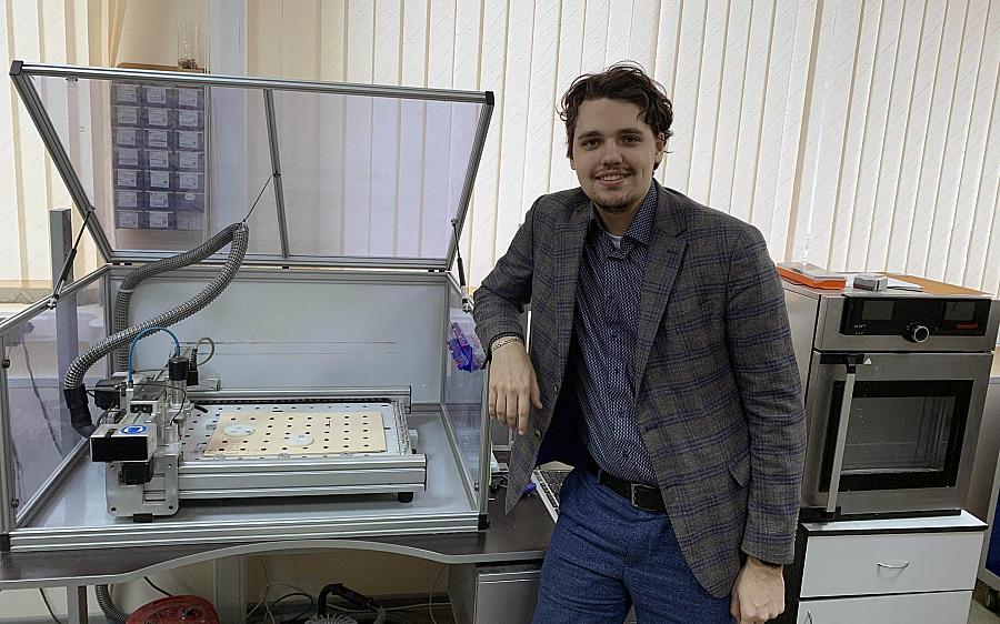 — MSLA-технология 3D-печати основана на использовании оптической системы, состоящей из источника ультрафиолетового излучения и жидкокристаллической матрицы. На ЖК-экран последовательно поступает изображение слоев изготавливаемой модели. Фотополимеризующаяся композиция затвердевает под действием ультрафиолетового света, проходящего через матрицу. Затем движущаяся платформа с сформированным на ней слоем поднимается для полимеризации следующего слоя. Тот же принцип можно использовать при производстве печатных плат: воздействовать на заготовку ультрафиолетовым светом, проходящим через матрицу, на которой находится изображение проводящего рисунка, — говорит инициатор проекта.