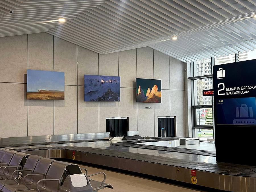 Посмотреть шестиметровое полотно можно в зоне встречающих терминала прилёта. Остальные картины доступны в зале выдачи багажа.
