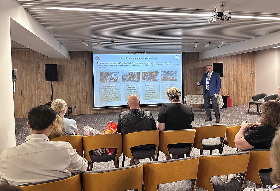 Первый вице-президент Академии наук авиации и воздухоплавания Сергей Петрович Халютин выступил с докладом: «Предиктивное управление на основе технологии цифровых двойников». Он показал, что применение адекватных цифровых моделей может позволить улучшить качество процессов управления в разных практических задачах – при синтезе регуляторов, гарантировать недопущение возникновения аварийных ситуаций, связанных с вредными колебаниями и потерей устойчивости и др.