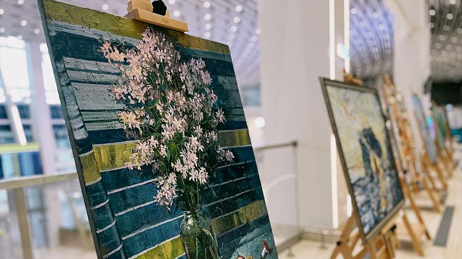 В главной воздушной гавани региона открылась экспозиция «Художники» от музея книги А.П. Чехова «Остров Сахалин». Выставка объединила 21 работу десяти сахалинских авторов из губернаторского проекта «Художники Сахалинской области».