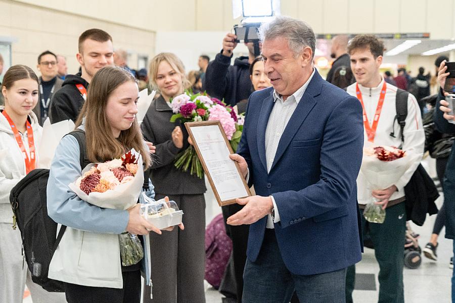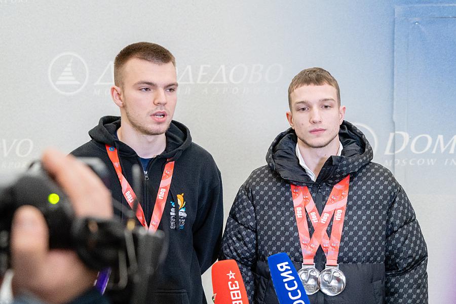 11 ноября в аэропорту Домодедово прошла встреча сборной команды России по прыжкам на батуте, завоевавшей шесть медалей на чемпионате мира в Испании.