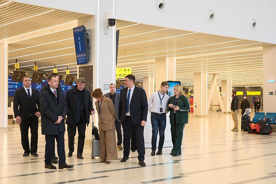 Отдельным блоком стало знакомство с пассажирской инфраструктурой на втором этаже терминала. Участникам показали фотовыставки и арт-объекты, а также две бесплатные зоны ожидания вылета, оформленные в виде газовоза и традиционной лодки с головой медведя. Делегации также представили обновлённую комнату матери и ребёнка: доступ в неё организован через систему контроля, родители с детьми могут пользоваться пространством без присутствия дежурного агента.