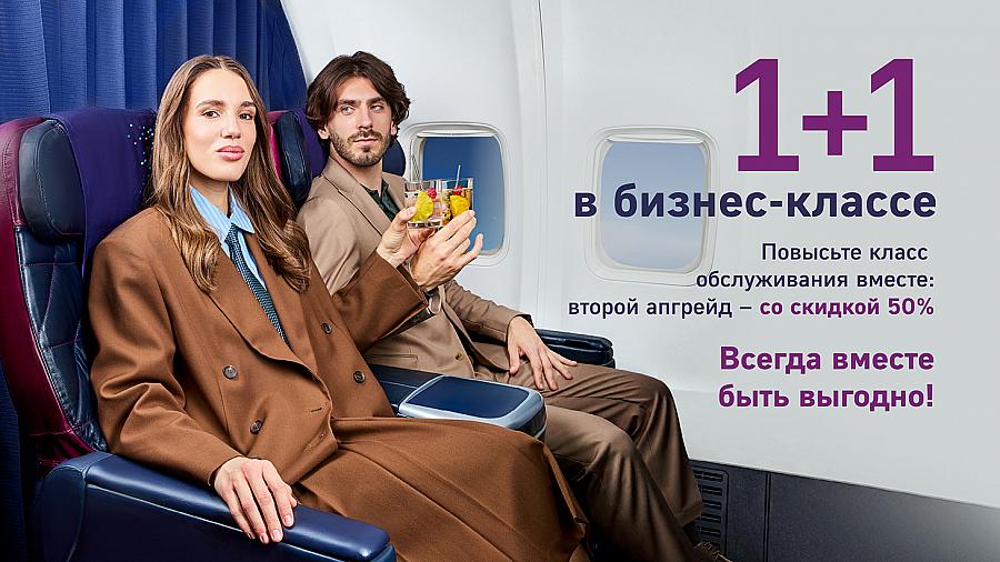 Стоимость услуги «Апгрейд 1+1» составляет 100% от цены для первого пассажира и 50% для второго, что делает это предложение выгодным, интересным и особенно привлекательным для тех, кто путешествует вместе и хочет насладиться полноценным комфортом в полете.