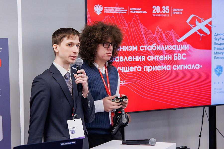 Одна из команд МАИ — «РадиоВектор», в которую вошли участники из институтов № 1 «Авиационная техника» и № 4 «Радиоэлектроника, инфокоммуникации и информационная безопасность» — выиграла в номинации «Бортовое оборудование». Она презентовала устанавливаемый на беспилотные воздушные суда механизм стабилизации направленной антенны, который позволяет увеличить дальность радиосвязи.