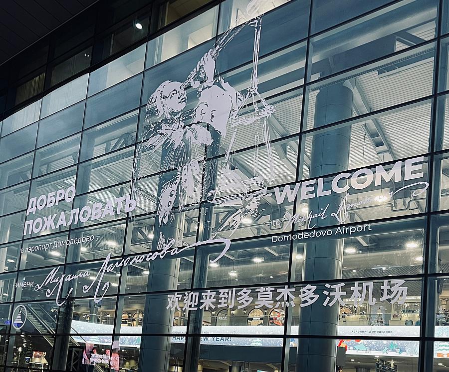 Обновлённый портрет вновь стал ярким акцентом на фасаде пассажирского терминала и продолжает оставаться одним из символов аэропорта, который носит имя великого русского учёного. Новая версия сохранила привычный облик изображения, но были обновлены отдельные элементы и детали, а также внесены изменения в некоторые шрифты.