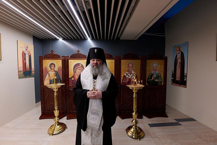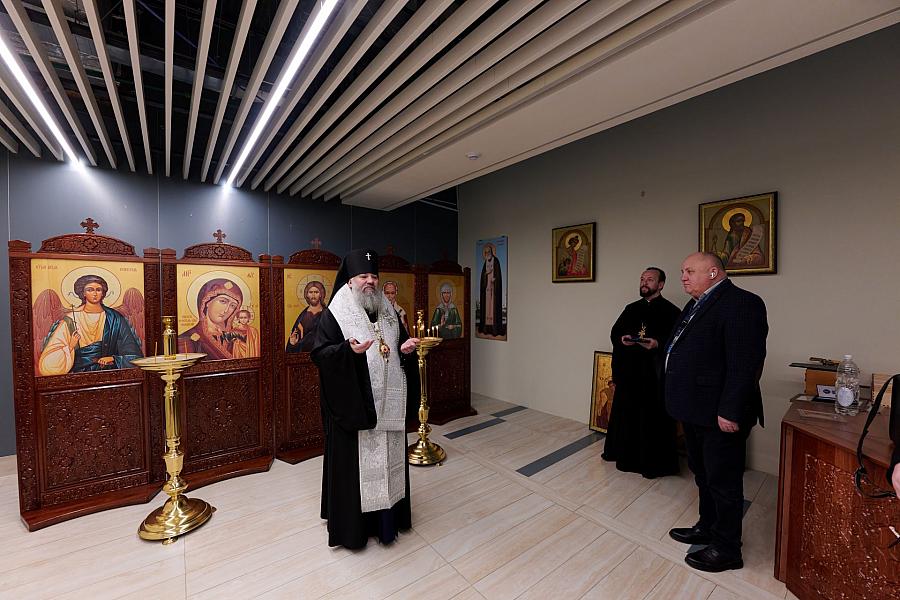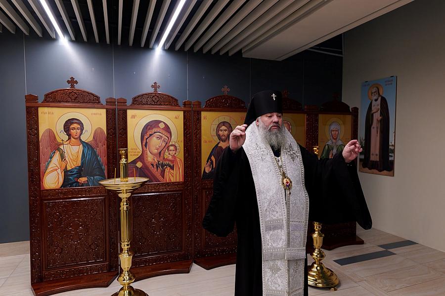 Для того, чтобы им комфортно было совершать важные таинства перед полётом, здесь установили тумбы, шкафы с литературой, псалмами и молитвословами, ящики для свеч и молитвенных записок. Число подсвечников увеличили. Иконостас дополнили образами Иисуса Христа, покровителя путешественников – Николая Чудотворца, а также Богоматери, Матроны Московской и Ангела Хранителя.