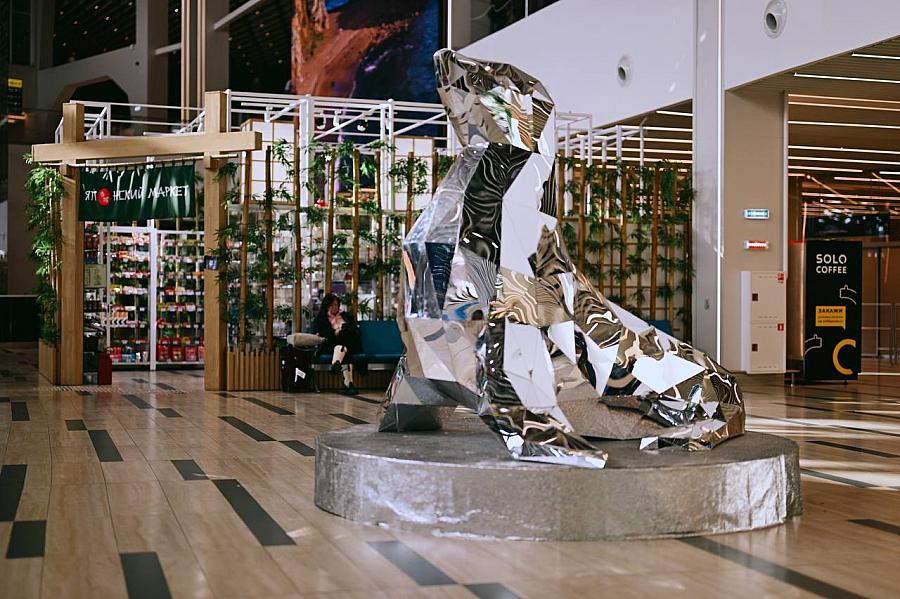 В атриуме главной авиагавани региона разместили символичный арт-объект. Зону выхода украсило семейство сивучей, выполненное из зеркального пластика. Теперь пассажирам предлагают выбрать имя для старшего из них.