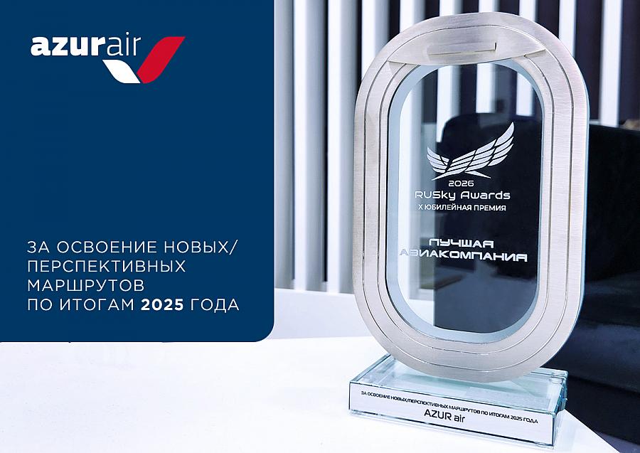 Авиакомпания AZUR air стала обладателем юбилейной, Х Премии RUSky Awards в номинации «Освоение новых и перспективных маршрутов» по итогам 2025 года. Торжественная церемония награждения прошла 4 февраля в рамках Национальной выставки и форума инфраструктуры гражданской авиации НАИС.