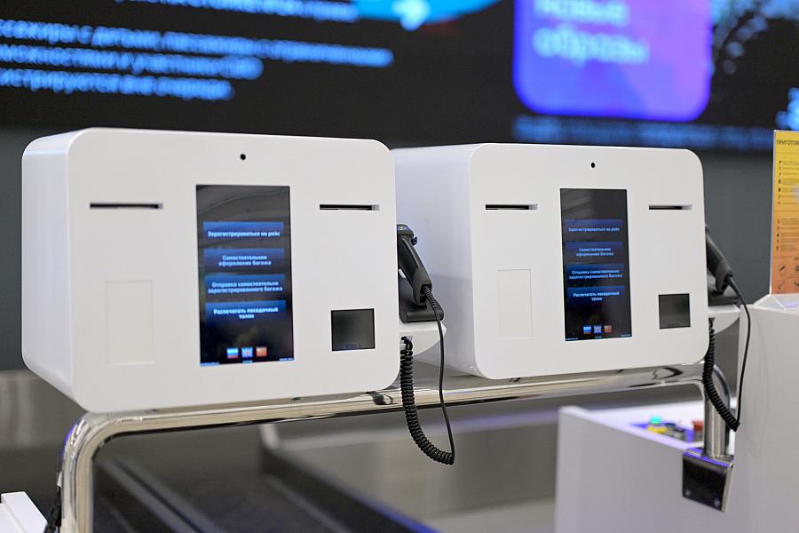 Все аппараты - российского производства и работают на отечественном программном обеспечении. Аналогичное оборудование хорошо зарекомендовало себя в крупных московских аэропортах. Оформление пассажира и его багажа на рейс занимает считанные минуты - достаточно следовать указаниям на экране. Интерфейс понятный и лаконичный.