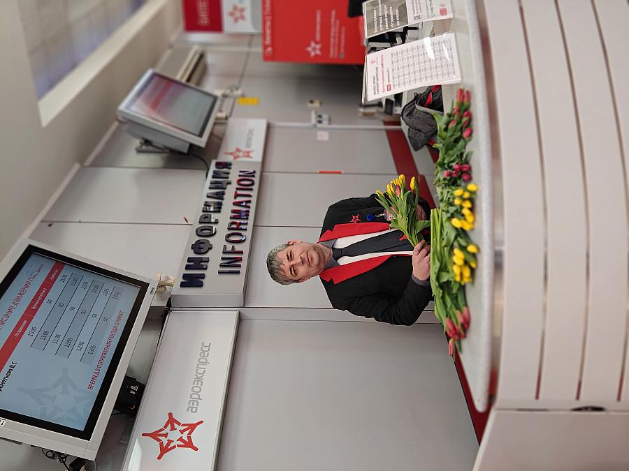 Поздравление пройдет в течение дня в терминалах Аэроэкспресса на Белорусском и Павелецком вокзалах.